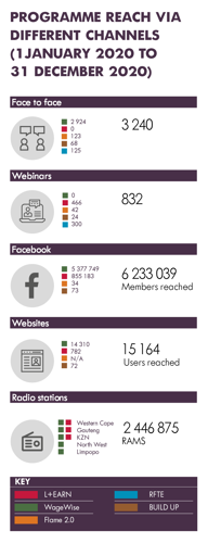 Since its inception in 2013, the Foundation has delivered multiple impactful financial education programmes across all provinces in South Africa reaching more than 46 800 beneficiaries in face-to-face interactive engagements.