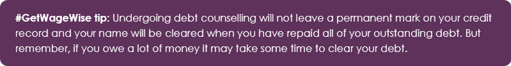 Debt counsellors help you to get over your debt and re-establish a good credit rating.Please note that debt counsellors ONLY work with registered financial institutions (shops, banks, registered microlenders) and not with loan sharks.