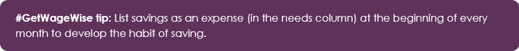 - Wants: record all your wants (remember to record that you expect to pay and what you actually pay)